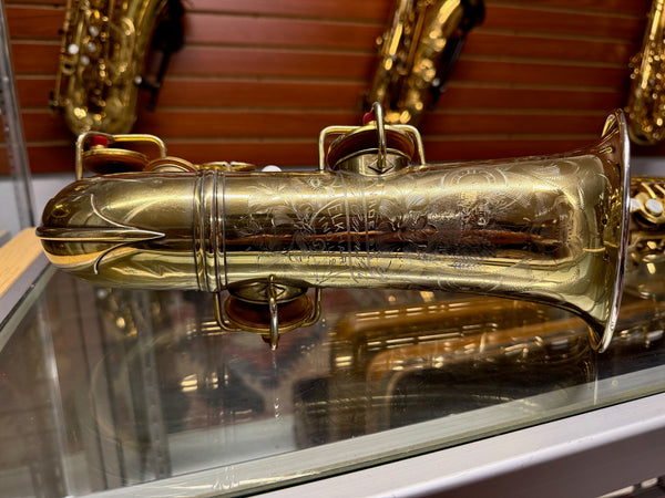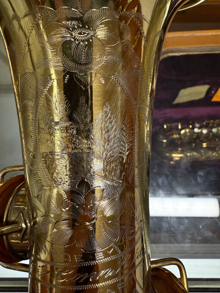 The engraving is really quite stunning and pleasing to the eye in person. While theres no way to prove it theres a solid chance this was one of the Stenberg brothers engraved horns. Overall this is a very special saxophone in great condition.