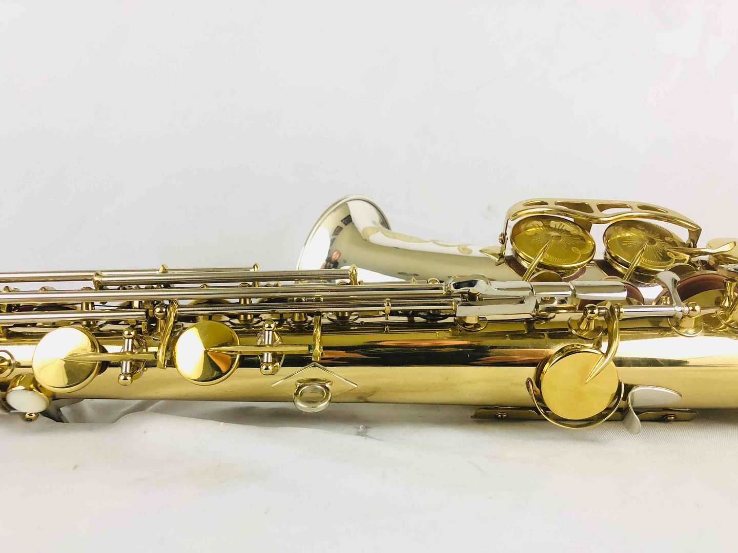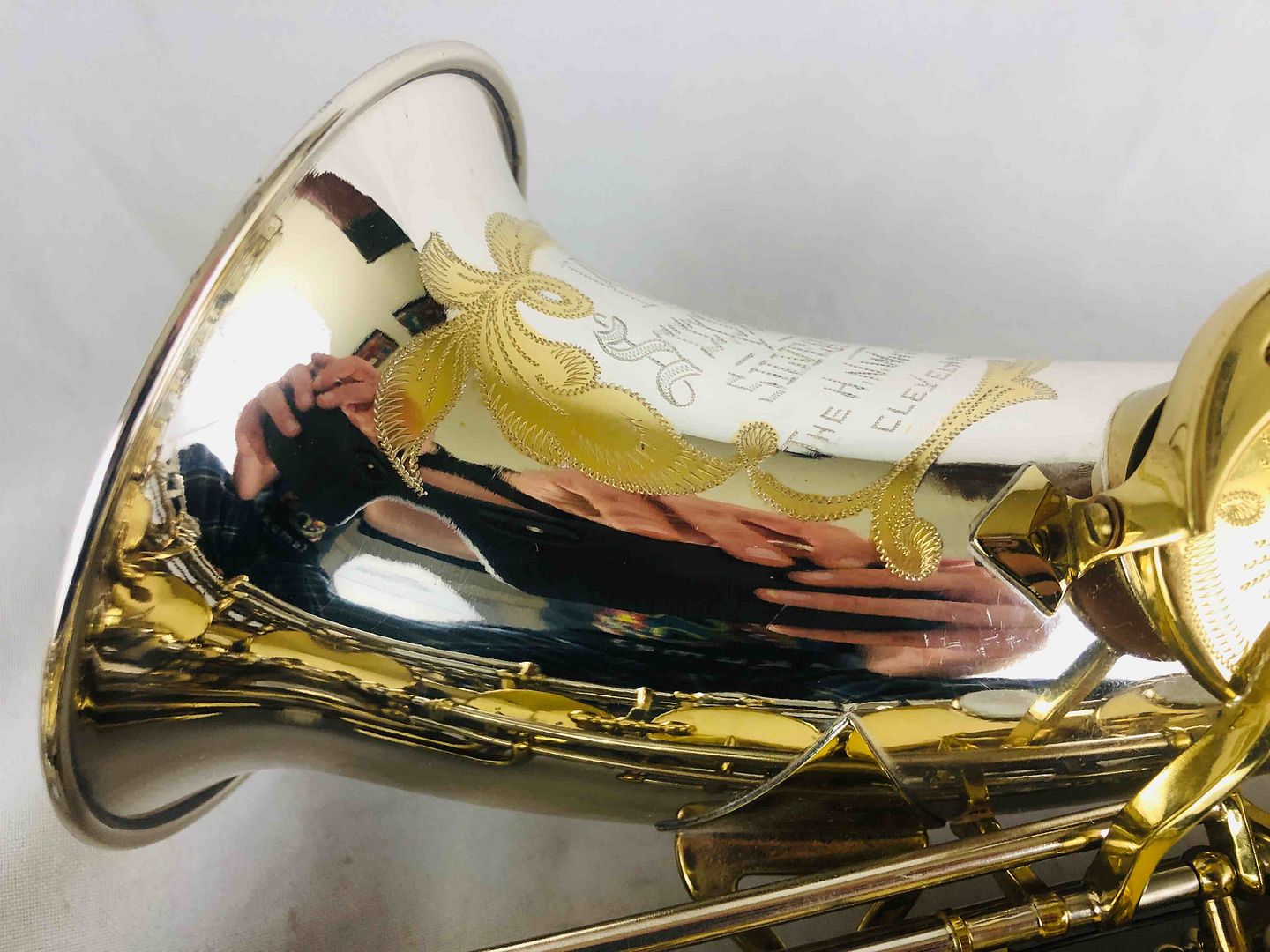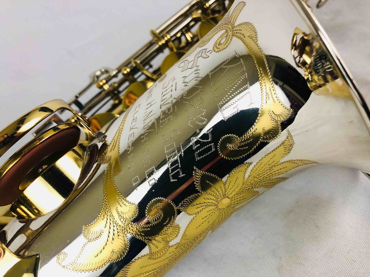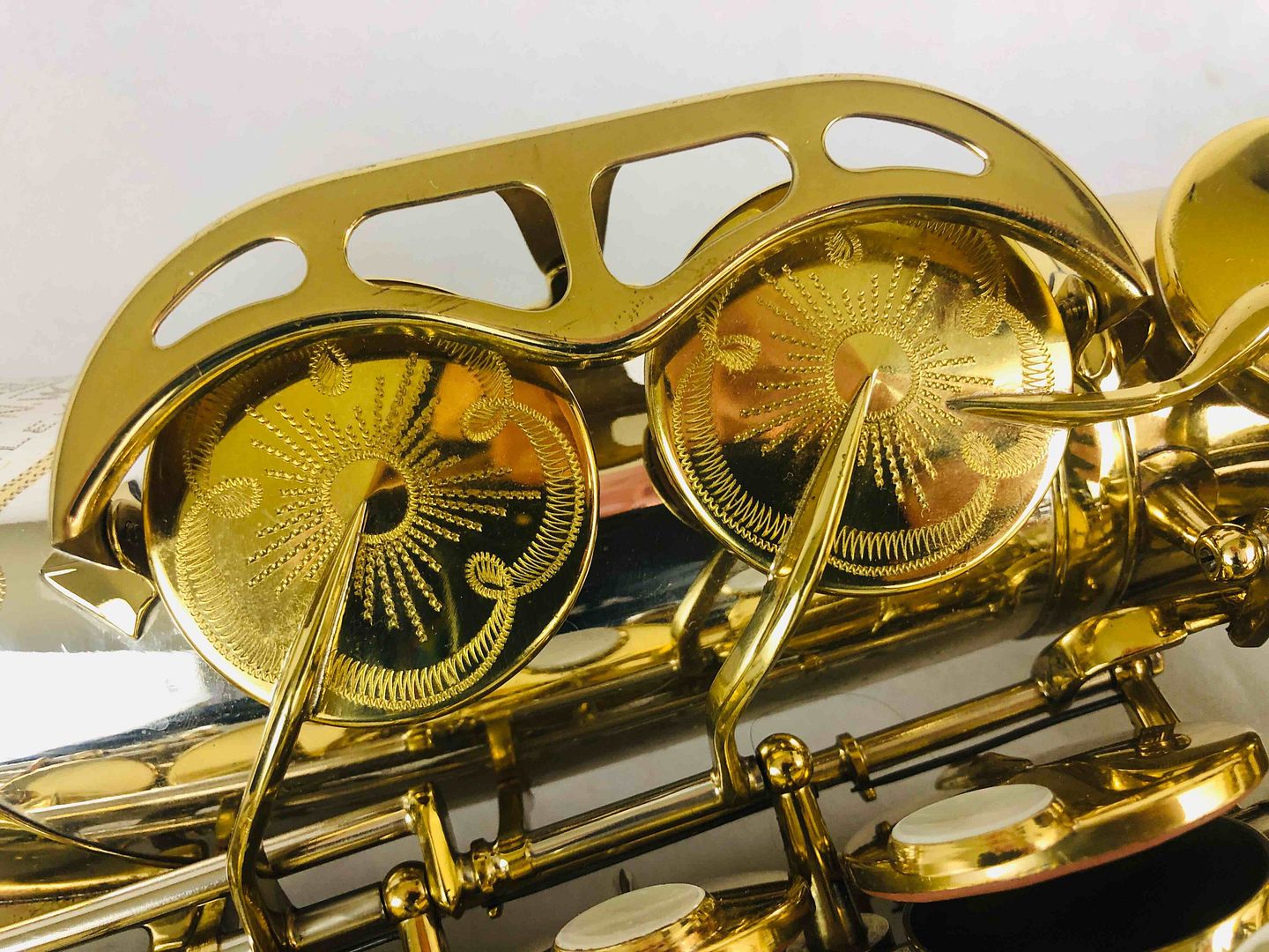 For sale is a beautiful King Super 20 Silver Sonic alto saxophone with extremely rare gold plate inlay!