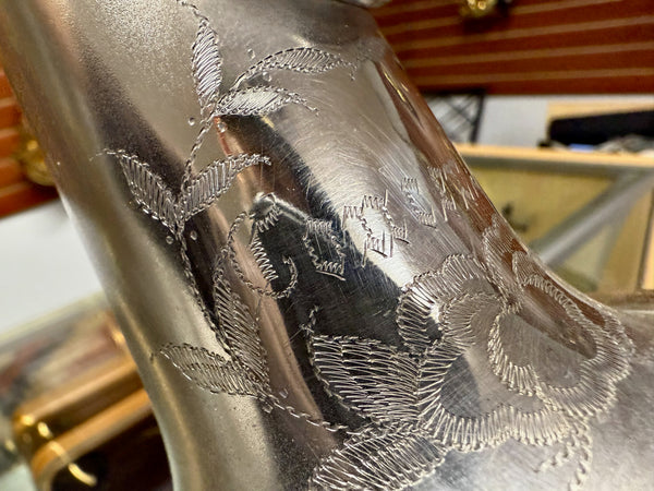 This saxophone is sitting on old pads and will need a full overhaul and pad job to be a functional saxophone.
