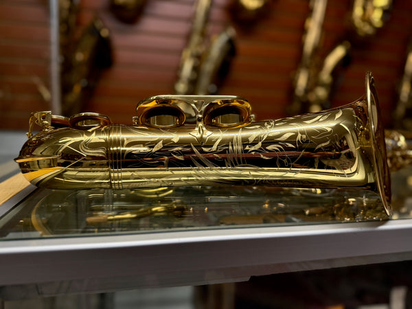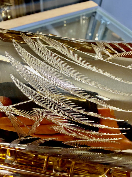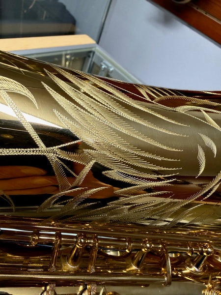 The Selmer factory no longer hand engraves saxophones. All of the current Selmer saxophones are machine engraved so this is a very special piece.